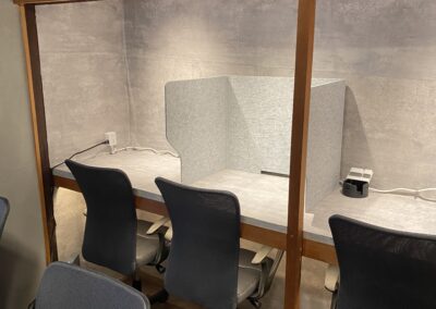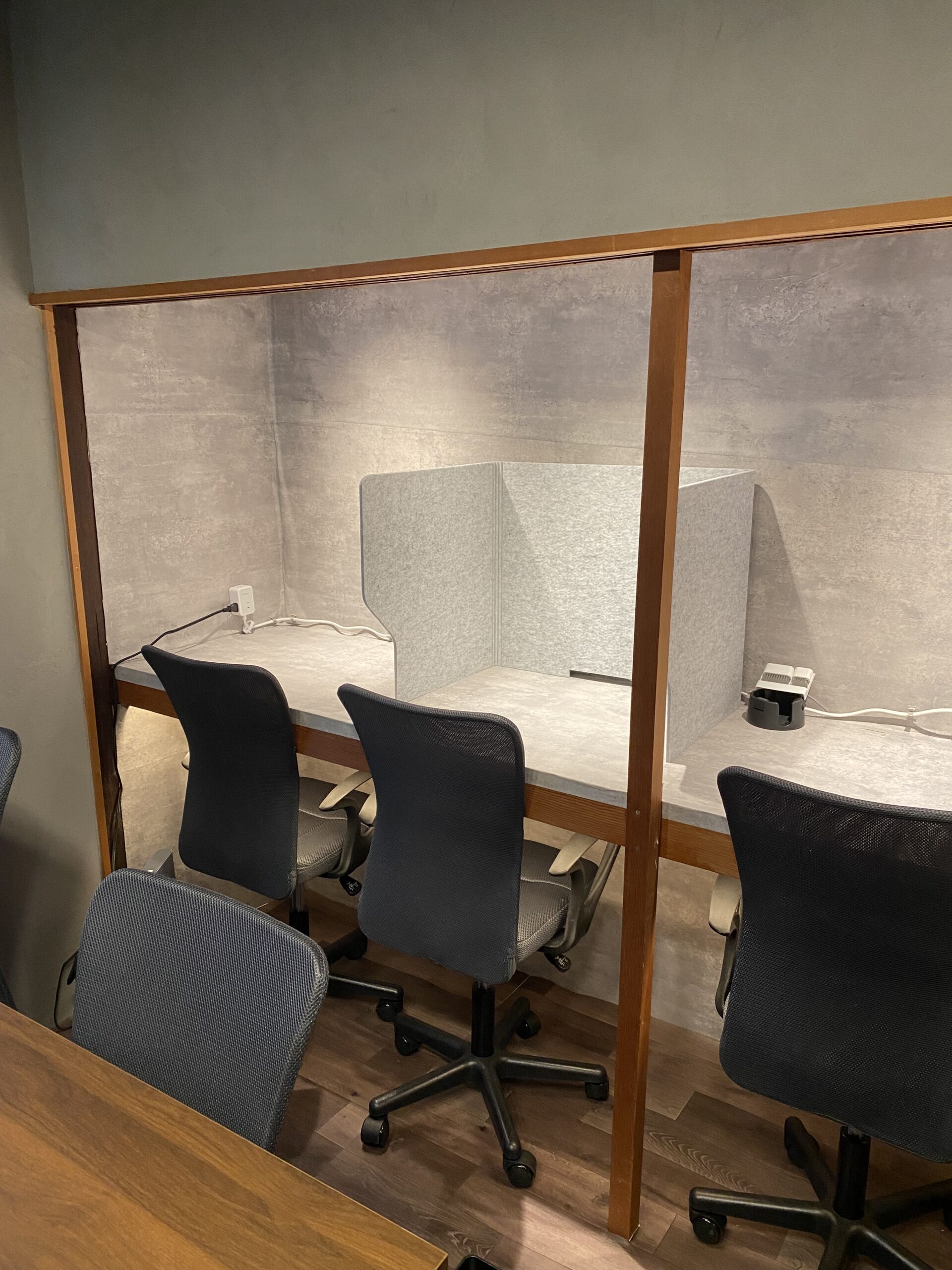 他にも、各自習机備品として、コンセント(+USB-A/C)、デスクライト、ドリンクホルダー、共用備品として、スマートフォン用充電ケーブル(USB-C/ミニUSB/ライトニング端子)、移動式パーティション、荷物置き、鍵付きのスマートフォン保管庫、などを準備しています。