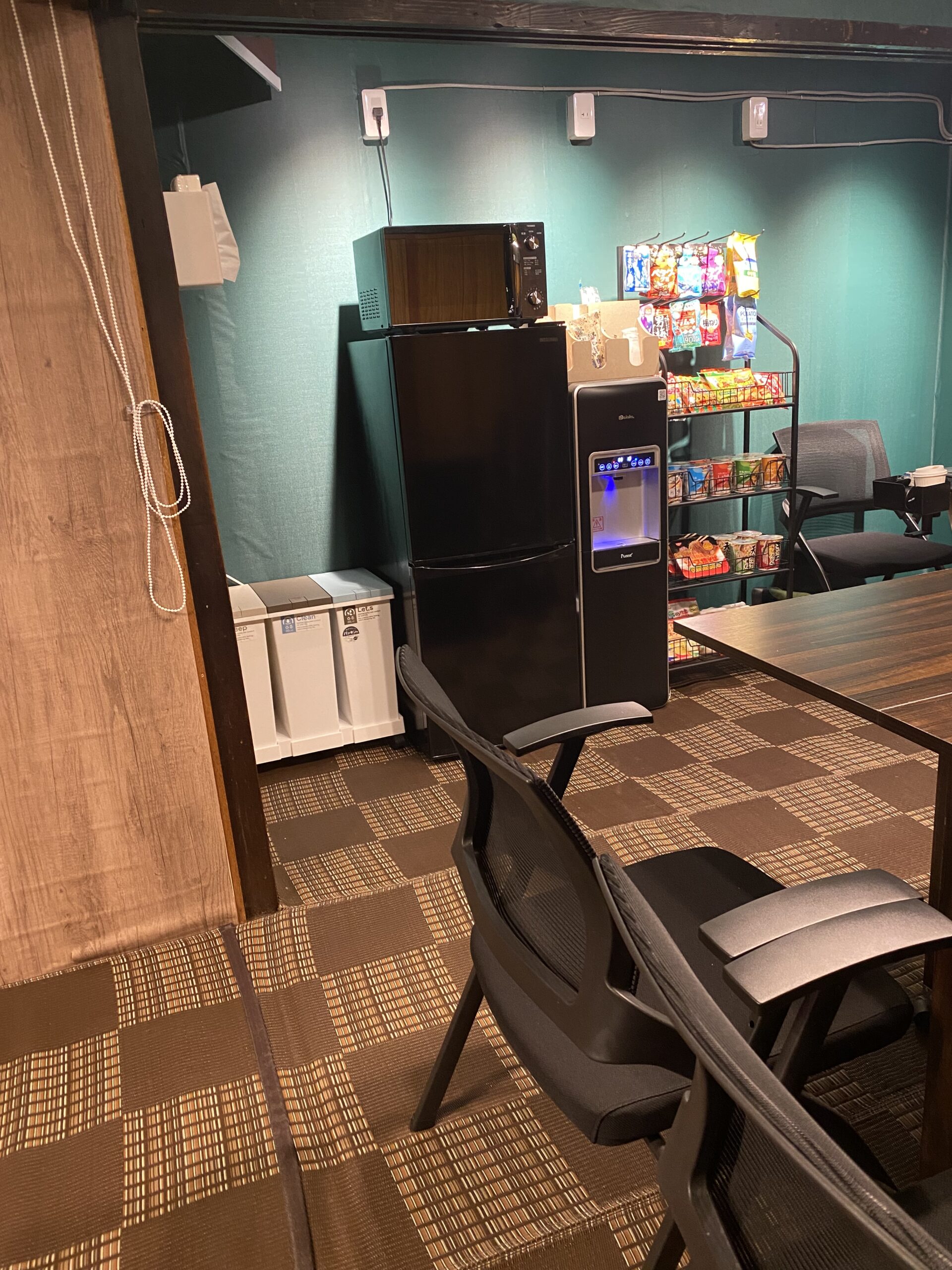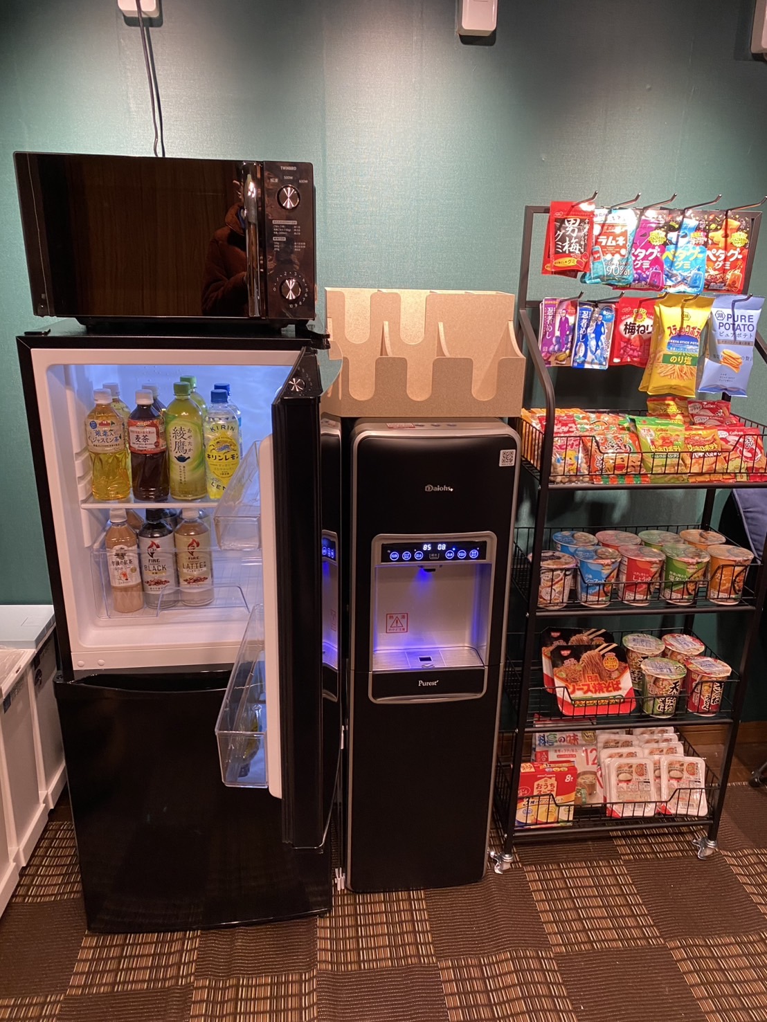 カップラーメン・カップスープ・インスタントコーヒー(有料)など小腹が空いた時や気分転換したいときにご利用ください。